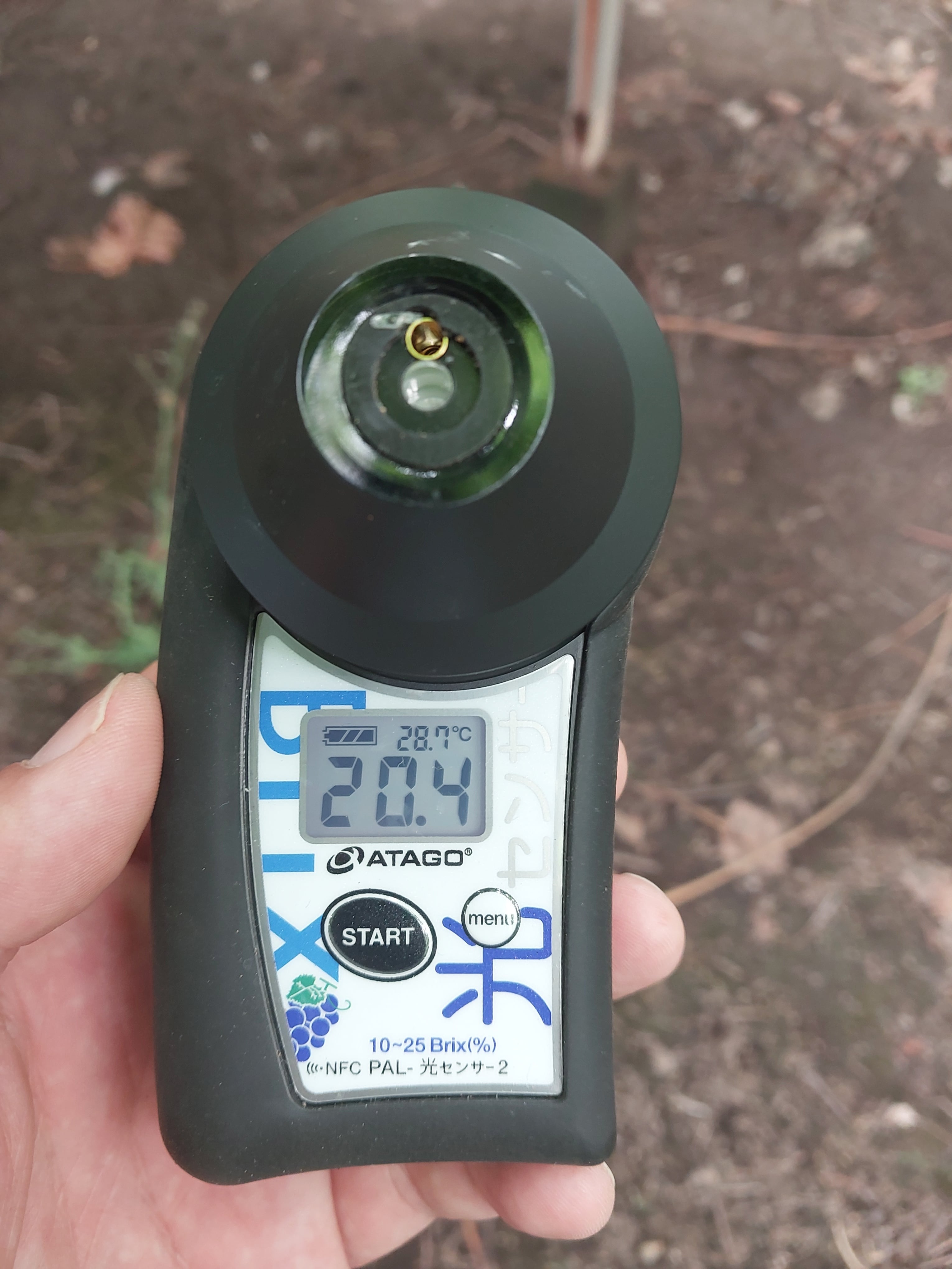 糖度は専用の糖度計で測定し、平均糖度18度以上の果実を収穫しております。